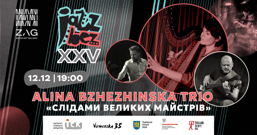 У межах ХХV Jazz Bez матимемо шанс почути джазову арфу у супроводі одних із найстильніших музикантів сучасної сцени! Концерт Alina Bzhezhinska Trio відбудеться 12 грудня у просторі Zenyk Art Gallery.