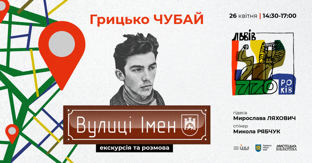 У неділю, 26 квітня, у фокусі проєкту «Вулиці Імен» — Грицько Чубай. Буде екскурсія вулицею Чубая та розмова про митця. Дізнавайтеся деталі, реєструйтеся — та приходьте на «Вулиці Імен».