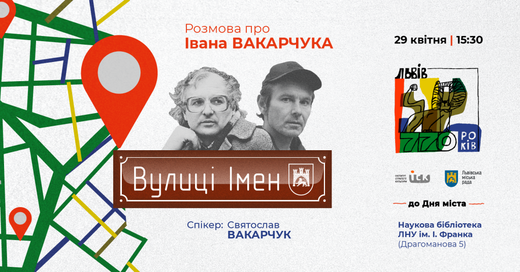 Реєстрація на розмову, а також на екскурсію вулицею Івана Вакарчука від Тетяни Казанцевої тут: https://forms.gle/tcuCqJmsDHD1idAT7.