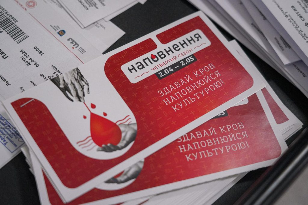 З 2 квітня до 2 травня у Львові та області триває четвертий сезон акції донорства крові «Наповнення». Кожен, хто здасть кров у Міському центрі крові або Львівському обласному центрі служби крові, отримає безплатний квиток від однієї з понад 40 культурних інституцій міста та області. Акція вже четвертий рік поспіль поєднує донорство крові з культурним життям регіону та формує культуру регулярного донорства як частину відповідального міського середовища.
